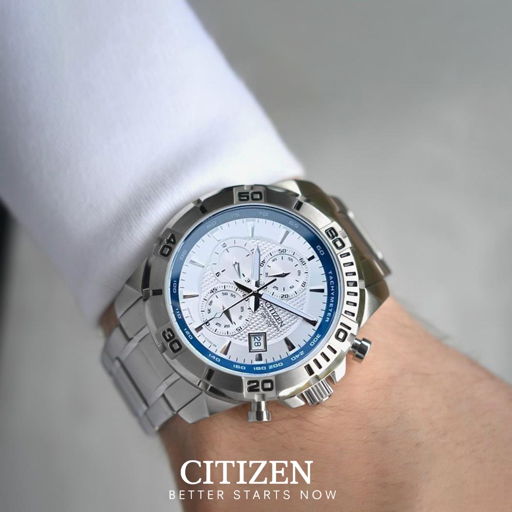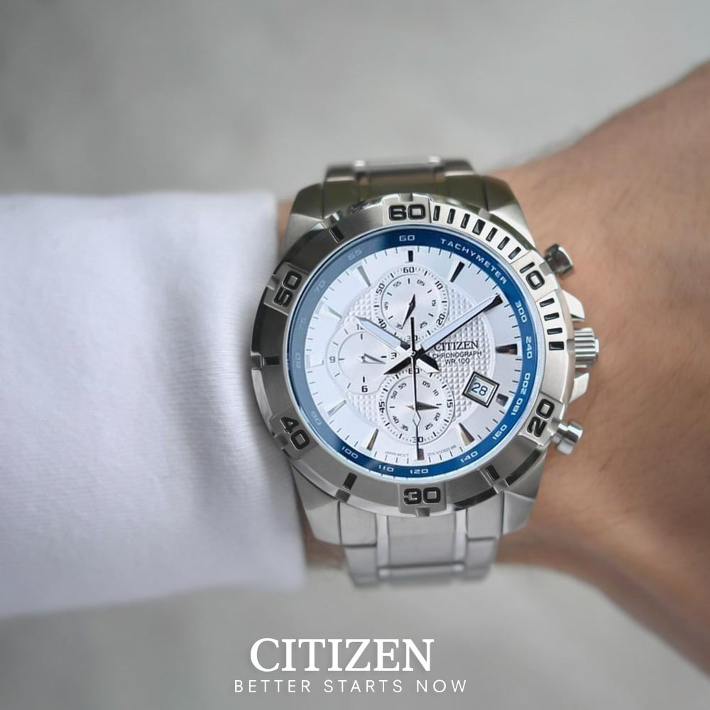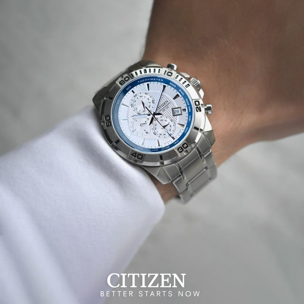 Đồng hồ Citizen AN3490-55A ngoài chức năng xem ngày, giờ còn được “bonus” thêm chức năng Chronograph và Tachymeter vượt trội.