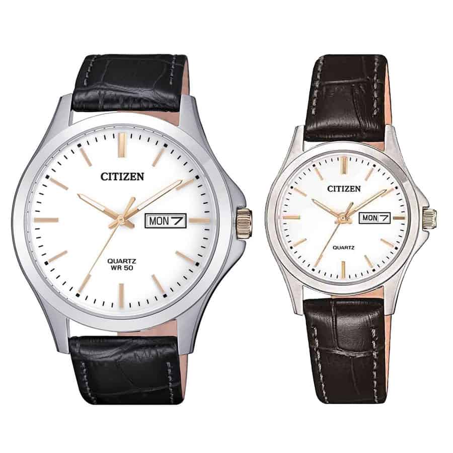 Đồng Hồ Đôi Citizen Dây Da Quartz BF2009-11A (Nam) EQ0599-11A (Nữ)